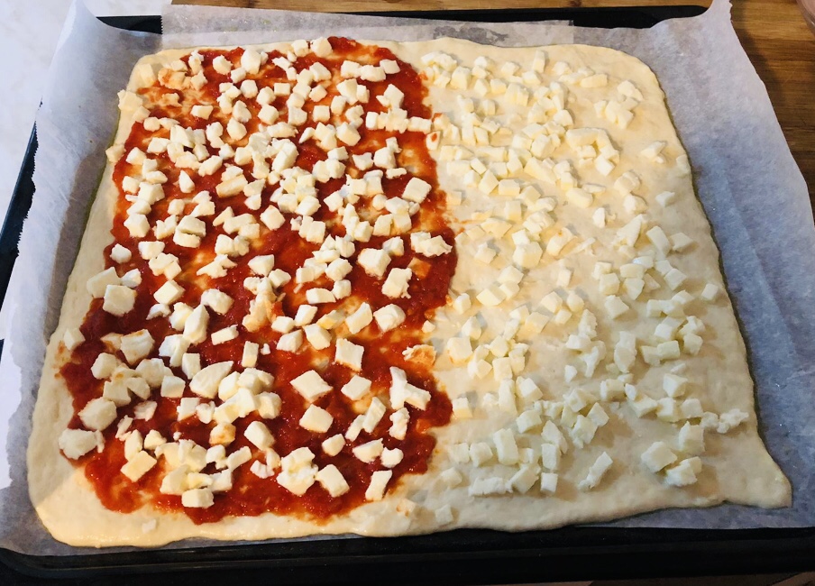 Nel frattempo mi esercito per migliorare sempre più l’impasto e la farcitura della pizza casalinga che faccio solitamente in teglia e suddivisa in due: metà margherita- immancabile – e metà fantasia (capricciosa, con radicchio e provola, con salmone e zucchine o mortadella e pistacchi).