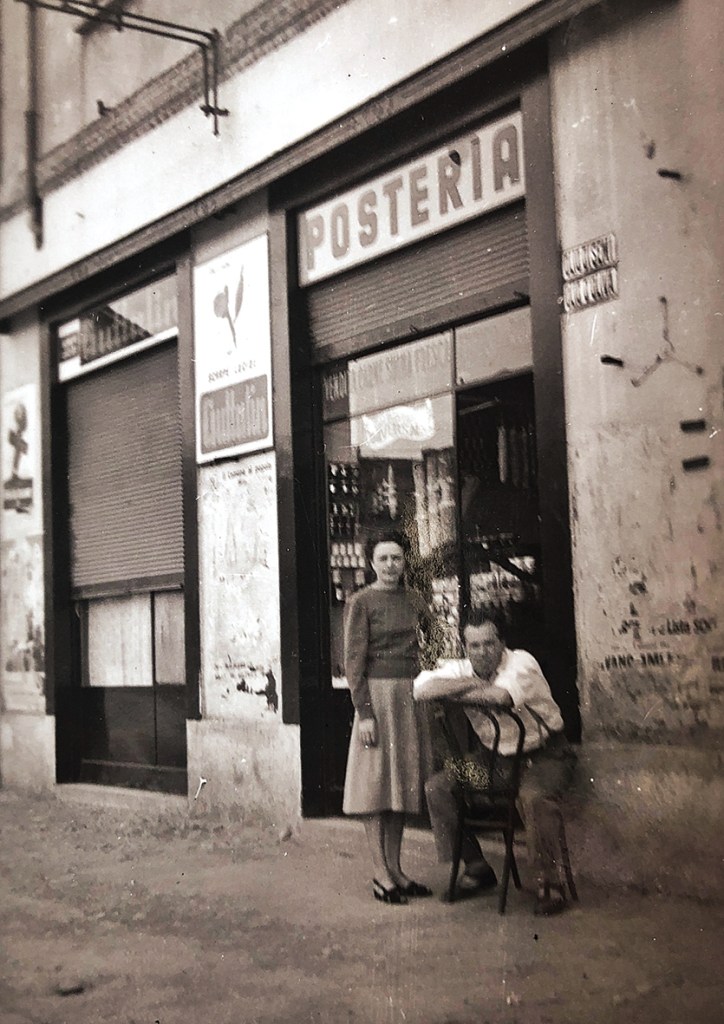 Il magazzino era il nostro parco giochi quando mia madre, impegnata con i clienti che entravano e uscivano, non aveva molto tempo per noi tre fratelli piccoli. Gli scatoloni, nel magazzino, erano disposti ordinatamente a seconda dei prodotti che contenevano e del reparto a cui appartenevano, questo per permettere, a fine giornata, un facile accesso per ripristinare i vuoti lasciati sugli scaffali. Mia madre ci teneva e sapeva bene che mio padre, tornando tardi la sera da Milano, avrebbe dato un’occhiata. Gli scaffali dovevano sempre essere in ordine senza buchi che facevano, a detta loro, una brutta impressione. Mio padre lavorava a Milano ma affiancava mia madre nella passione per il negozio tanto da rimanere sveglio fino a tarda notte per fare l’insalata russa, aprire e disporre la grande latta di mostarda Sperlari con i frutti enormi che ora non si vedono più, oppure per disossare il nuovo prosciutto crudo lasciando l’osso un po’ “ricco” in modo tale che il giorno dopo avremmo potuto mangiare il prosciutto più dolce, quello vicino all’osso. Tale era la passione che aveva persino trovato il tempo di frequentare un corso di gastronomia da Peck.