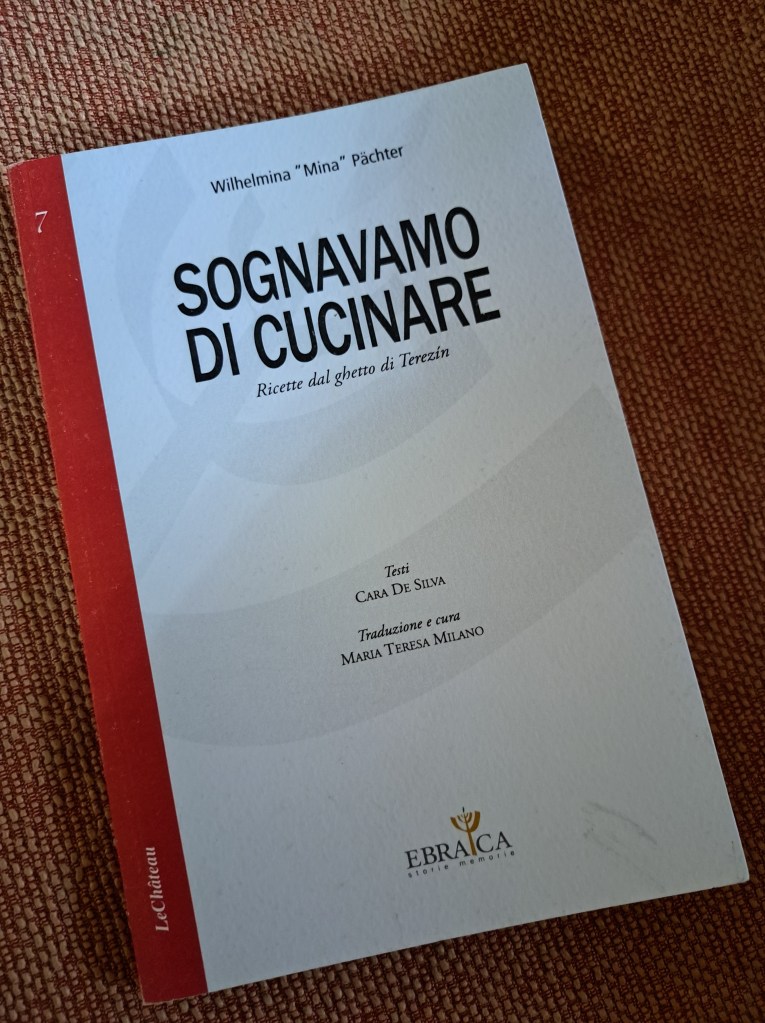 Riapro un libro a me molto caro, il ricettario di Mina Paechter, prigioniera di Terezin. All’interno del “ghetto modello ” Mina e le sue compagne si cibavano di qualche patata, pane raffermo e surrogato di caffè. Ma di notte, prima di dormire, le donne si scambiavano ricette, l’unico ricordo rimasto della loro vita precedente, della intimità familiare, della quotidianità ora negata. Mina raccolse queste memorie su alcuni fogli sopravvissuti al tempo. Il quaderno, nascosto da Mina all’interno del ghetto di Terezin, è rimasto per decenni nell’ombra per essere poi ritrovato e riportato agli eredi della autrice trasferiti negli Stati Uniti.